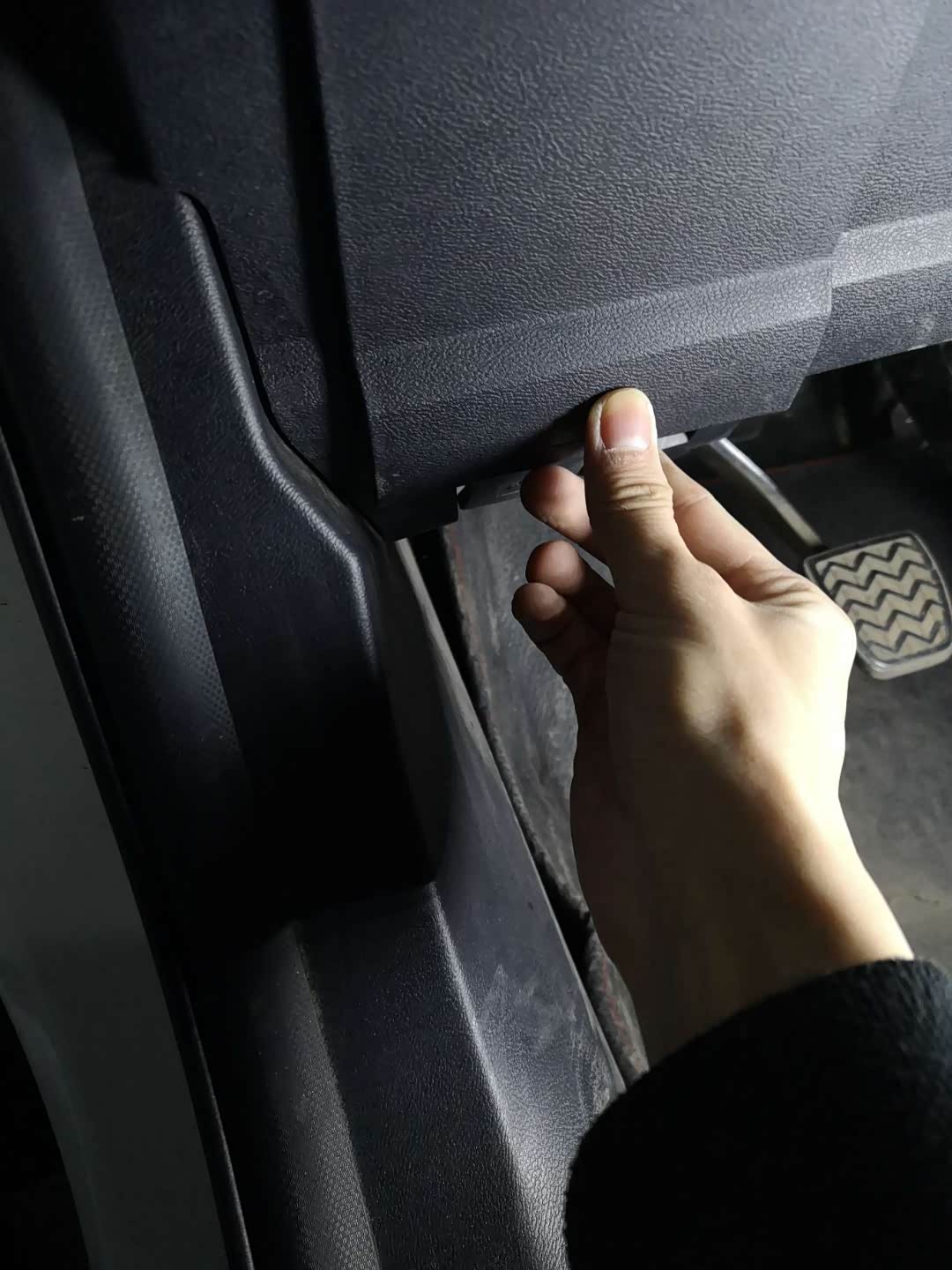 走线就按照正常隐藏式走线即可,从顶棚到左侧a柱,然后走橡胶条里面,从保险盒下面进入。把长的线扎带扎住。固定一下,避免出现异响!