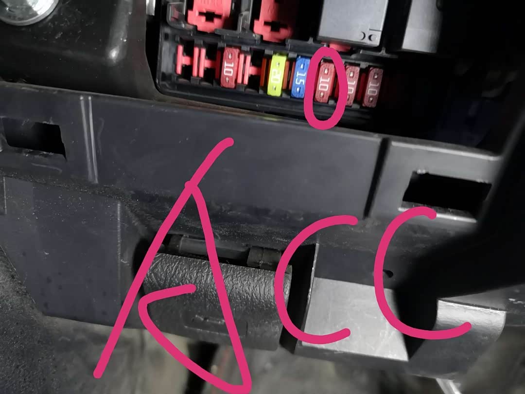 vcc接电源正极,gnd接电源负极接地线即可,acc接acc保险,因为有取电器不需要破线,直接取电器代替原来的保险丝即可