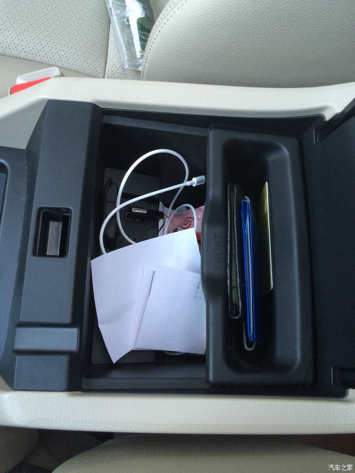 九雅的储物格 就这么几个 数量不少 空间不多 每个都好小感觉 稍微大点的东西就放不下 我出门经常代笔记本 只能放副驾驶储物箱里面 而且那种长的男士钱夹也放不了 2.0的中央副手箱 只有一个USB借口 不太方便 插了U盘就没办法接手机充电器了