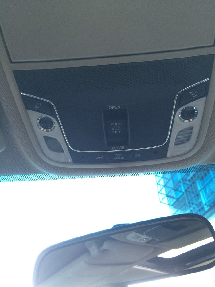 天窗开关和阅读灯 晚上效果非常好 因为两边有两个小蓝等 晚上照在线面档位板上面 有氛围灯的效果