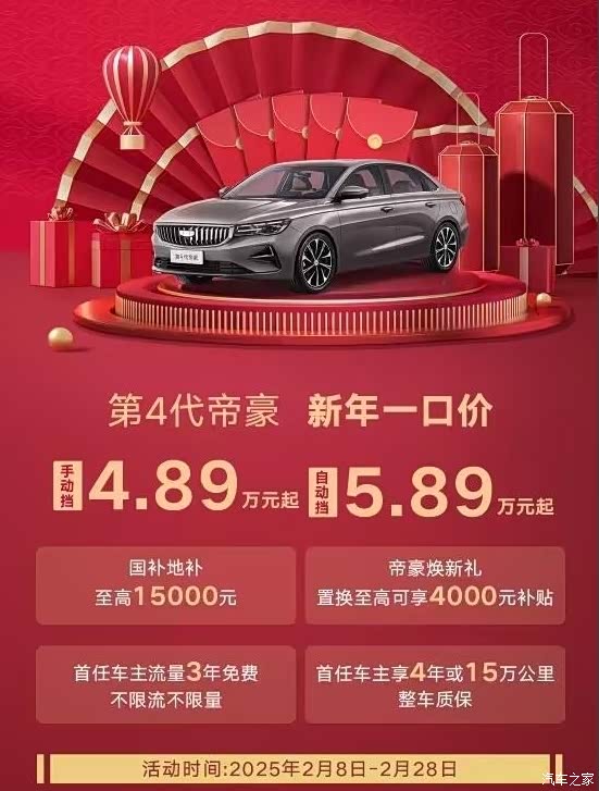谁说低价没好车?第 4 代帝豪手动挡 4.89 万起,性价比杀疯了