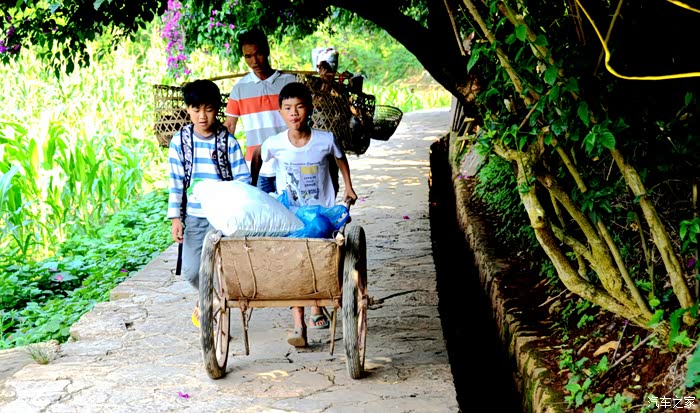 这里土地平坦开阔,玉米稻谷、桑竹林木镶嵌其间,田间小路、溪水池塘交错相通;屋舍构筑俨然整齐、村民来往耕种劳作;大人洗衣、小孩玩水,男女老少安逸休闲、其乐融融、其乐无穷,真像陶渊明笔下芳草鲜美、绿荫缤纷的肥沃田野和原始古朴、不问世事的人间桃源。
