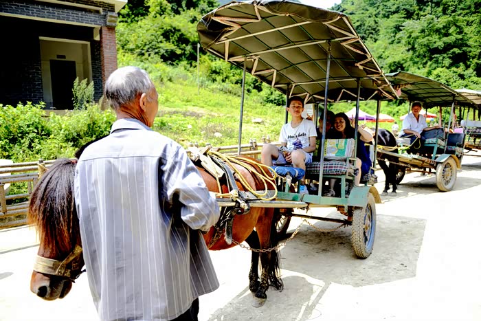 接下来是乘坐马车到汤拿洞,全长3公里,沿途景观没什么特色......