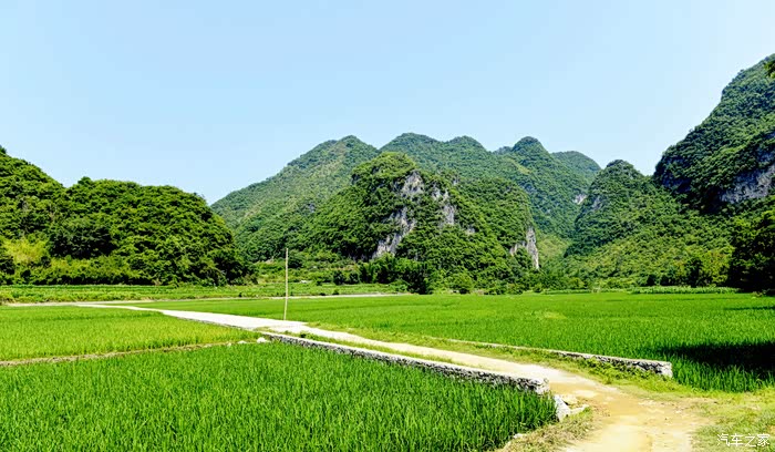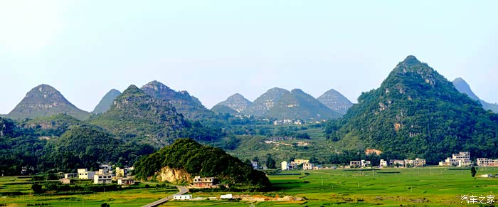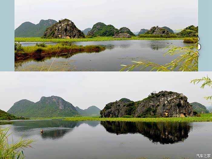 路途风光不错 ,一路上千山环野立、田园若画廊,呈现出一派派桂林山水的诗情画意,心情好极了。