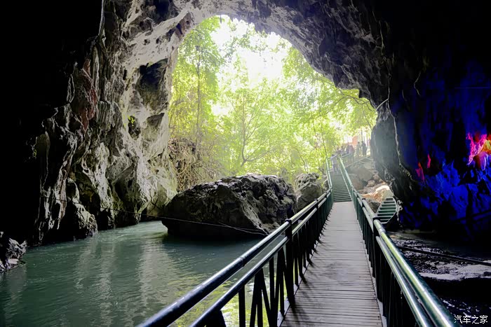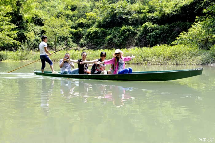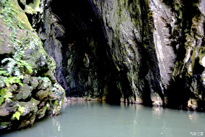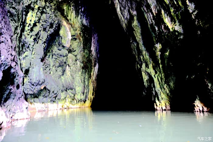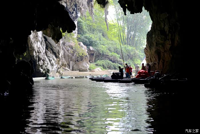 通往世外桃源的正是这条一公里长的暗河溶洞,洞高水深必须乘船进入,为第一段船道。