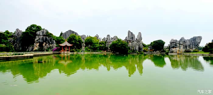 偶认为小石林更具美学价值和观赏价值。这里场景空旷大气、景观组合丰富多彩、背景造型漂亮大方,石柱成林、石山成排,草坪青萋、花木点缀,池水清幽、倒影灵动,交相构成了一幅幅石林喀斯特地貌的优美画卷,再次被这大自然的鬼斧魅力感动折服。