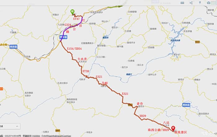 九龙景区至坝美世外桃源行程近180公里,都是在县道和省道间交替穿行。