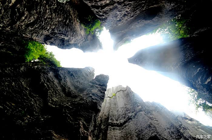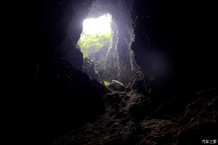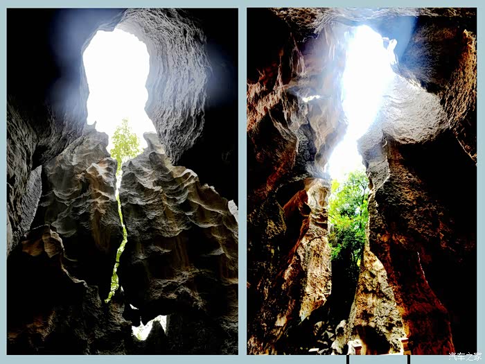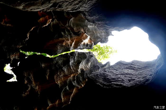 忽然洞顶出现一道亮光,随即抓拍两张,原来这溶洞上方还有个天窗,很是奇妙。