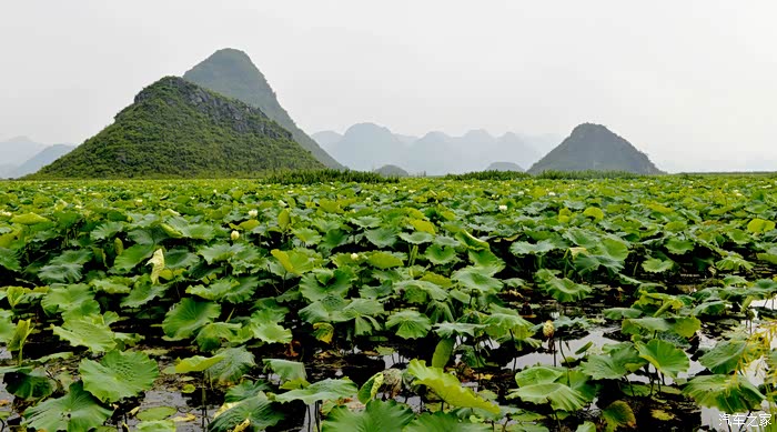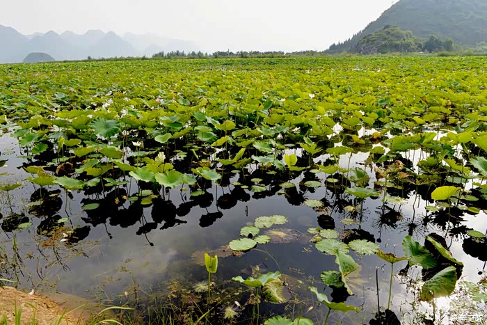 山得水而活、水得山而媚。这里千峰共舞、百流环绕,山连水、水连山,荷花盖其间。上万亩野生荷花遍布在这片一望无际的岩溶湿地和山水之间,共同谱写了一幅“世间罕见、中国唯一”的喀斯特山水田园风光,奇秀古朴、幽静苍翠。