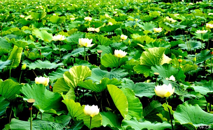 荡舟穿行其间,河风拂面、清香扑鼻,如置身一幅巨大的诗意画境中,令人陶醉难返。