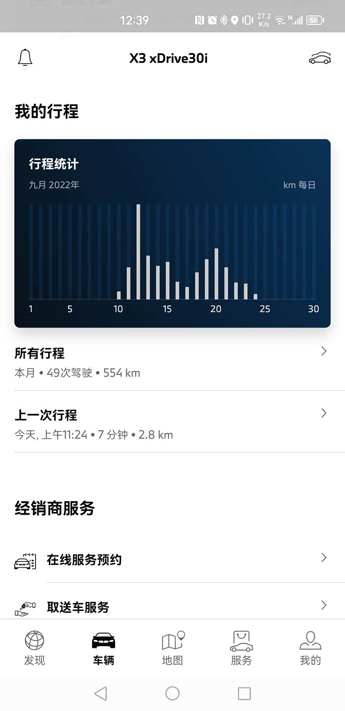 mybmwapp里有人跟我说他阉割版也显示了,但是我也没弄出来,隐私里也没有我的行程,我的应用里点更新也直接就是传输结束啥也没更新,而且我月初去4S升级过车子系统到最新的,那就和车机版本也无关,不知道为啥了