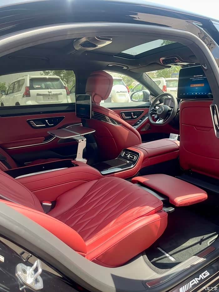 前排通风座椅,后排通风座椅,全景天窗,前排动态驾驶按摩座椅,抬头显示系统,后排MBUX系统遥控器,后排独立空调,前熏黑AMG进气格珊,U***套件,大柏林4D音响,后排娱乐系统,可加热智能大灯清洗系统,隐藏式门把手无钥匙进入,黑钢琴漆流线型木材饰板,AMG纳帕皮Performance方向盘,Chauffeur套件,窗帘套件,车内熏香套件,AMG特别外包套件,后排座椅舒适包(后排按摩座椅+颈部和肩膀加热),360度环影,高效微粒过滤器,AMG暗夜包,21寸AMG黑色多幅轮毂,红色刹车钳,后排右边带腿拖,冰箱,底升,自适应阻尼悬挂,后轮随动转向,Guard 360安全系统,室内安全保护,防盗装置,后排侧气囊,后排无线充电,前排可加热扶手,智能人机车内交互系统,前后特别设计安全带扣,后排自动伸缩安全带,副司机座椅可从后排座椅调节,纳帕真皮座椅,雷测,限速识别,车道保持,换道辅助,室内环境灯,GT按键,脚感电尾,定速,后尾盖可远程关闭,AMG 加油盖