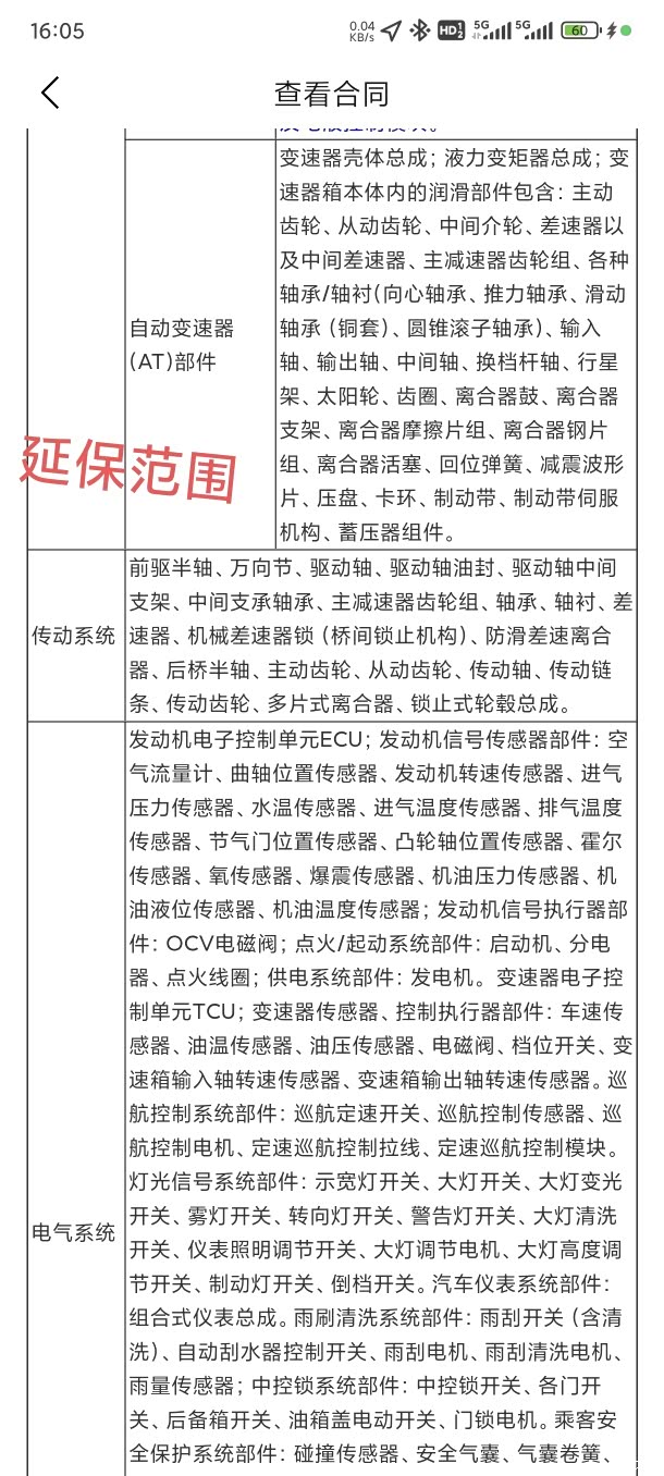 见合同表格,其实比亚迪玩的就是文字游戏,表格最后一行黑体字是含在精诚延保的,表格其他内容都不在延保范围,简单的说相当于一个车壳延保而已,连基本三电都不在延保范围的;