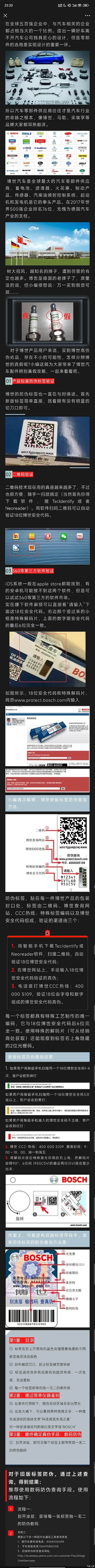 其实这个问题的本质并不在于某家店铺的作假行为。而是车主作为消费者,如何辨别这种情况。退一万步来讲其实任何非官方的途径都容易遇到假货。就以这次的博世防伪标签为例。其实通过现在正规途径能买到的产品,基本都是新一代防伪标签,即带二维码的防伪标签,这种很容易辨别真伪。真正需要警惕的是贴着最老一代标签的产品。在购买已停产的老零件或进口零件时最容易遇到。这一代标签查询真伪难,其实更需要我们多角度去识别(可以通过外观,即上文所提)。我希望通过分享我的经历,来帮助车主们提高辨别能力。(这里特指有需求采购老零件的车主们,毕竟老老实实买国产化新零件基本不会碰到这种问题)。希望车主们遇到这种可疑标签的时候来翻一翻我的文章或者官方gzh从而避免损失,我这篇文章的意义就实现了。