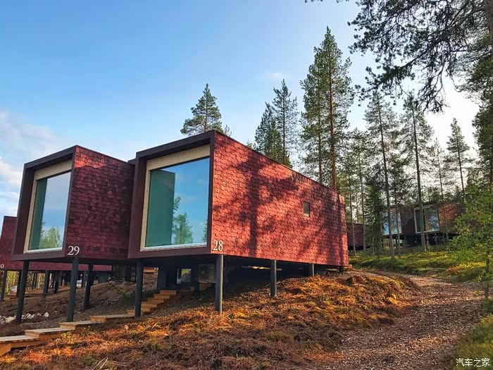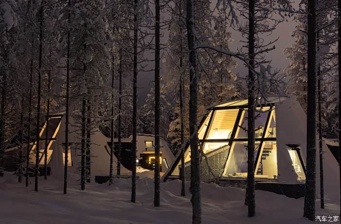 接下来我们打算去罗瓦涅米著名的树屋酒店看看,虽然我们并不打算住,而且这个季节也没有人会选择住树屋酒店,因为住树屋酒店就是为了在冬季看极光的。下面先给大家看看极光下的树屋效果图:
