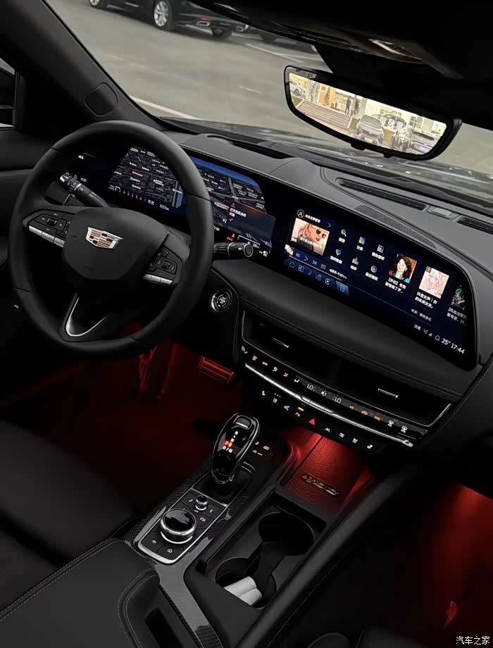 讲完动力参数和硬件配置,接下来我们拉开车门走进内饰,首先映入眼帘的是33英寸9K 环幕式超视网膜屏幕,内置8155芯片,分辨率达到8960X1320,屏幕色彩像素密度达到271PPI,感官通透清晰,UI界面功能分区合理,车机系统非常流畅,功能上,提供GPS导航、Carplay车机互联、5G车联网、语音交互识别等。再搭配AKG录音棚级音响系统和126色甄选氛围灯营造出浪漫的驾乘氛围,让每一次出行都充满仪式感。 并且CT5内饰肉眼可见的碳纤维饰板,无时无刻都在彰显豪华运动属性;CT5车型还带有模拟声浪,在每一次地板油的时候就像是打了一根肾上腺素。CT5配置整体非常高,在主动安全和智能驾驶方也是非常全面,入门及高配,也是同级别少有的,座椅通风、加热、按摩、方向盘加热都有的车型,性价比非常高。
