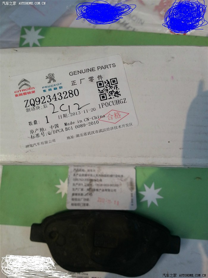 我的408车已经快4整年了,行驶了59956km.。近期发现刹车片很薄了大概4mm左右。根据车友及专家意见,安全起见,更换了原厂的博世刹车片,博世公司在辉门公司代加工的产品。这个刹车片其实是辉门摩擦产品公司生产的叫菲罗多的品牌,质量不错。看下图。换好后 ,开始时感觉刹车有点软。以后开开看。再继续更新。看