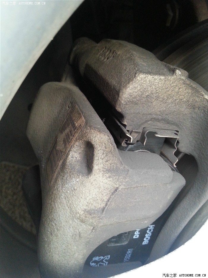 博世的刹车蹄,很结实。这个车整套刹车系统都是博世的,包括刹车油壶都是博世的产品,还是很好用的。这里赞一下神龙,还是有诚意做好产品的。对得起粉丝们!