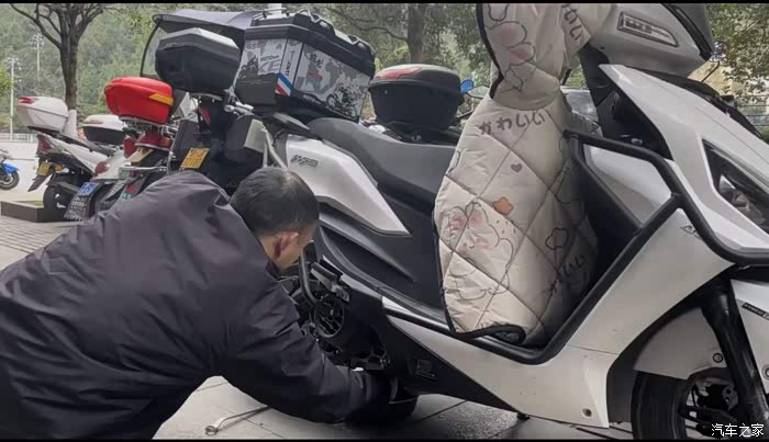 不经意间一个老头也是骑着以前的杂牌摩托车到这个店里面搞以旧换新,我看到他试驾的车挺好看的,我也试驾了一下,感觉特别适合,操作起来非常流畅,而且刹车那些感觉好稳,就像谈恋爱一样,一下子遇到了自己喜欢对得上眼的人,于是我就跟老板说,看看这个车,老板说这个车牌子是光阳,是台湾品牌,有ABS和TCS,配置非常高的,看了店里面同样配置的几款车价格都比它贵,那我说,就要这个车了,选了一个珍珠白2025年光阳KS125卓越版,老板说送我尾箱、雨衣、手套、揭面盔、护膝,还帮我安装护杠,整驾驶证、帮忙上贵阳牌,那我说可以啊!后面就把钱付了,9280元,交了交强险、上牌费,我说我没骑过摩托车,这么远,怎么办呢?老板说没关系,我全部给你弄好,过两天我直接给你拿货车给你拉过去,那我说可以啊,