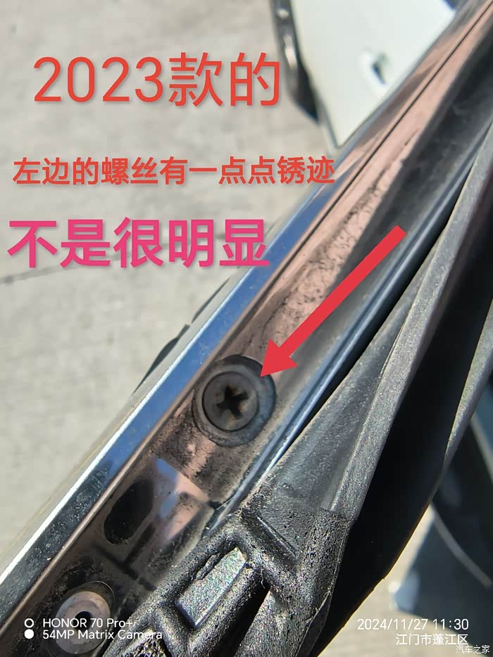我的是威兰达2023款豪华PLUS版本,刚无聊掀开胶条看了看,左后车门螺丝有一点点生锈,这是我能接受的状态。