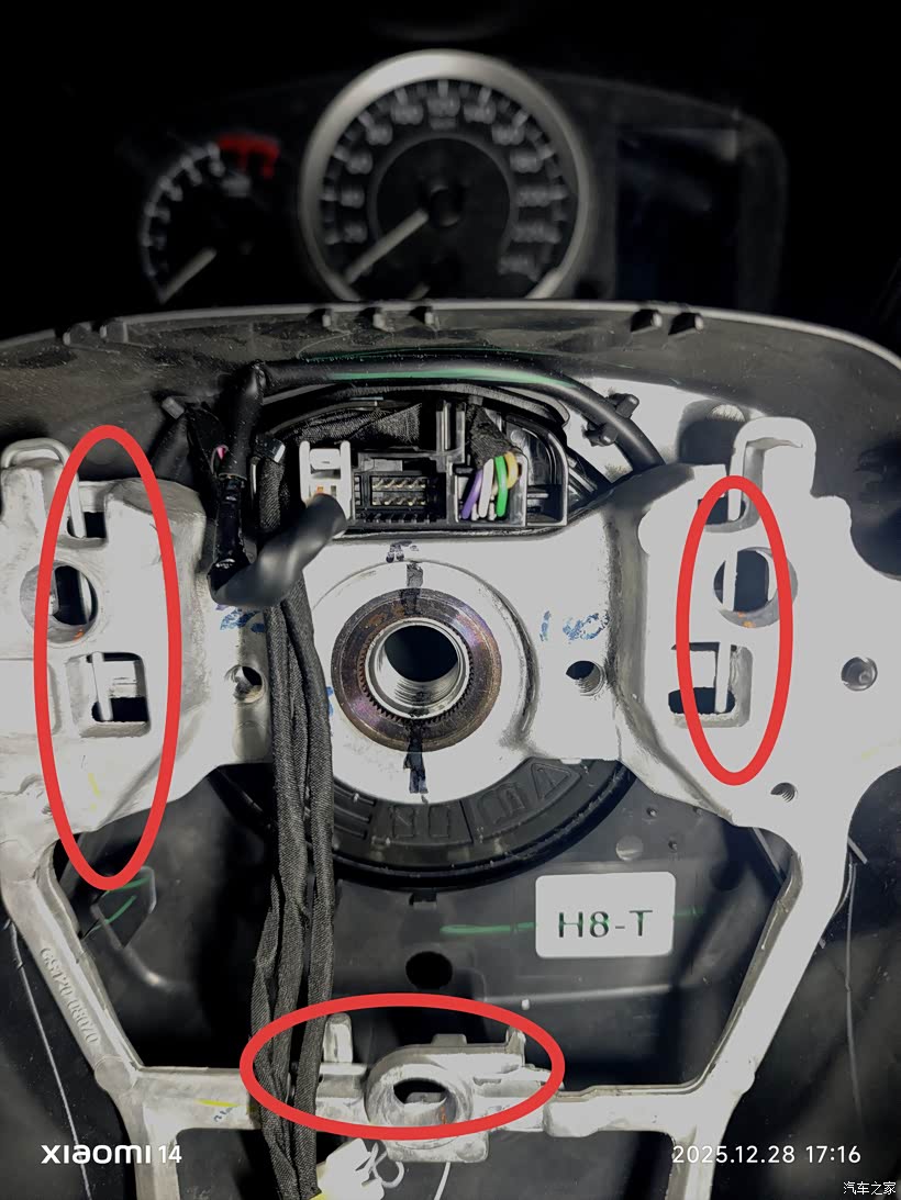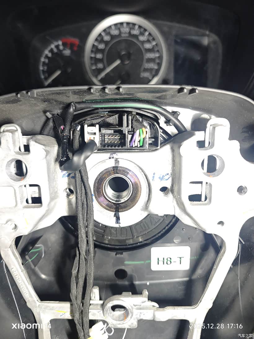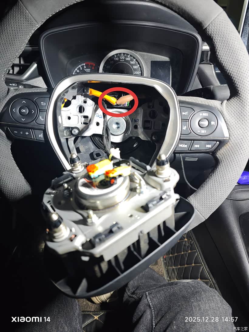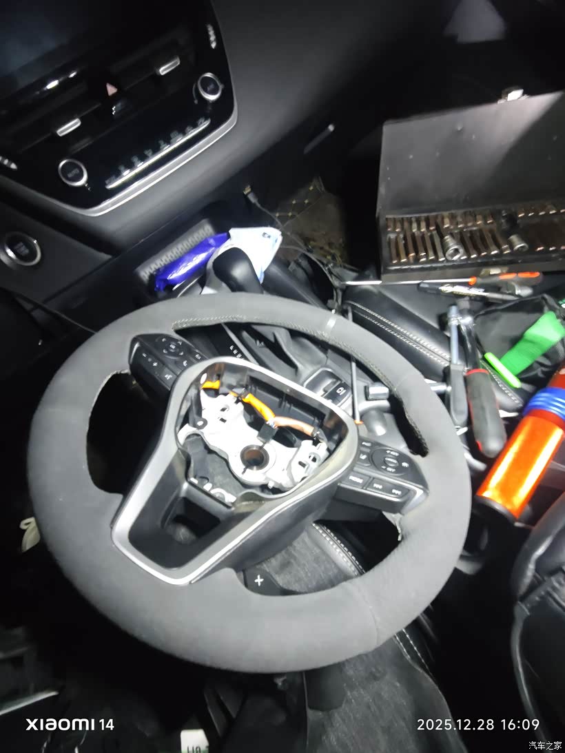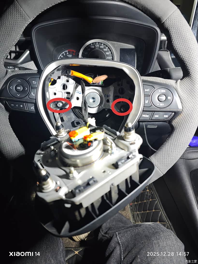 气囊线束插头也取下来,方向盘需要用10号的内6角螺丝套筒拆卸。我当时没有只能去汽修店找老板借。