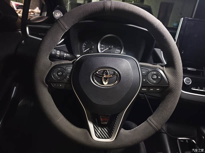 值得注意的是雷凌的方向盘下面有个孔能透出去的,但是凯美瑞的底座没有孔,所以需要一个盖板盖住