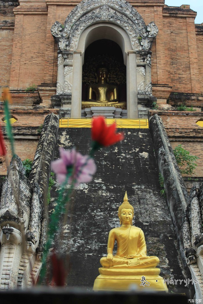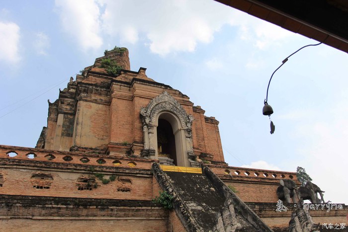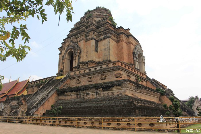 柴迪龙在泰语中是“大塔”的意思,就是因为这座兰纳式四方形的大佛塔得名的。原来据说有90米高的,后来因为地震和战乱,塔被破坏了,现在只有60来米。饱经沧桑,让这座塔更加散发出一种神秘又迷人的魅力。