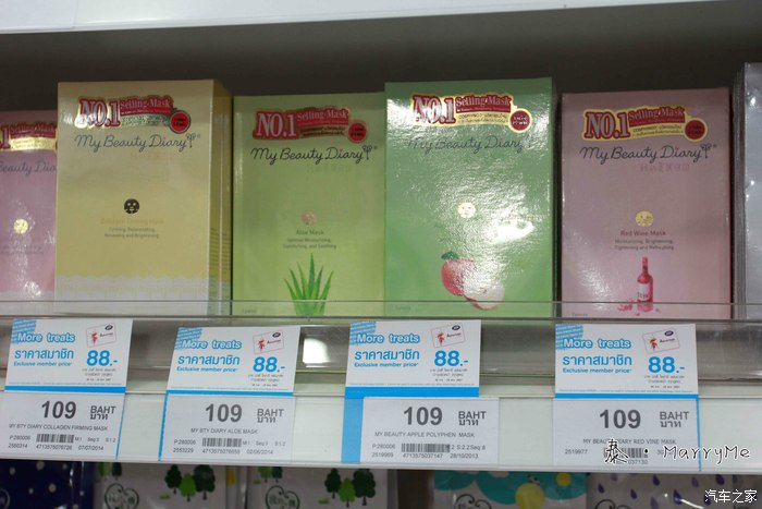 随意逛进了一家类似国内屈臣氏的店,意外发现了美丽日记面膜,没想到美丽日记都走进泰国了撒