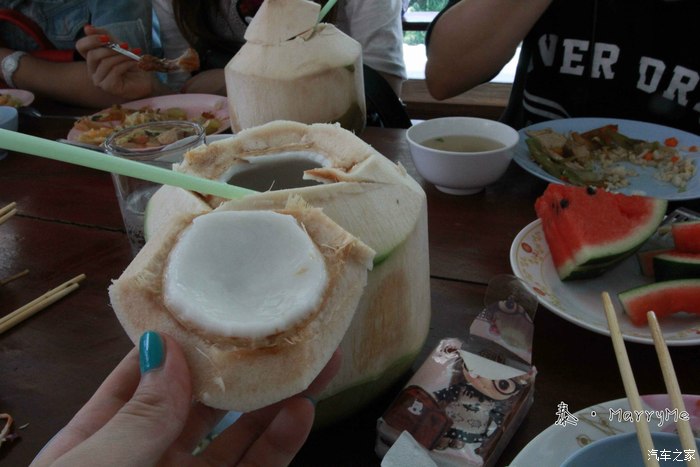 午饭说是自助的,其实比较简单,吃吃饱就可以了,买了个椰子,50b,很清凉很甜,椰肉很Q