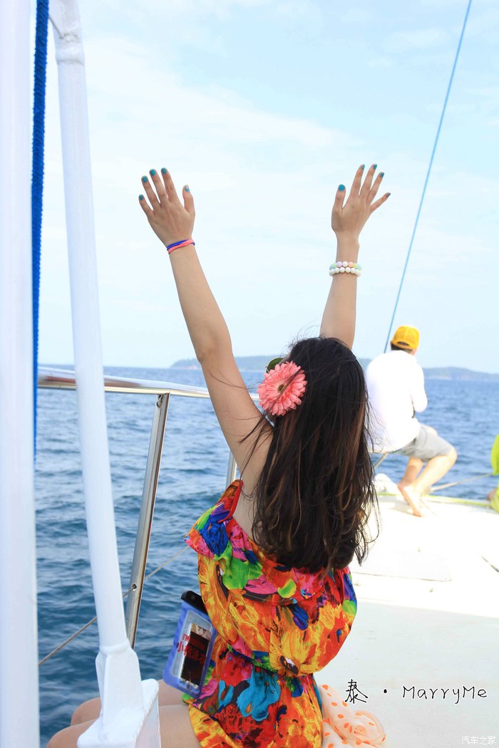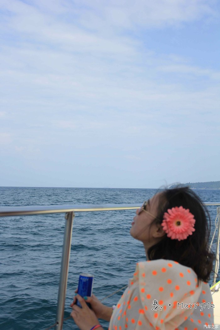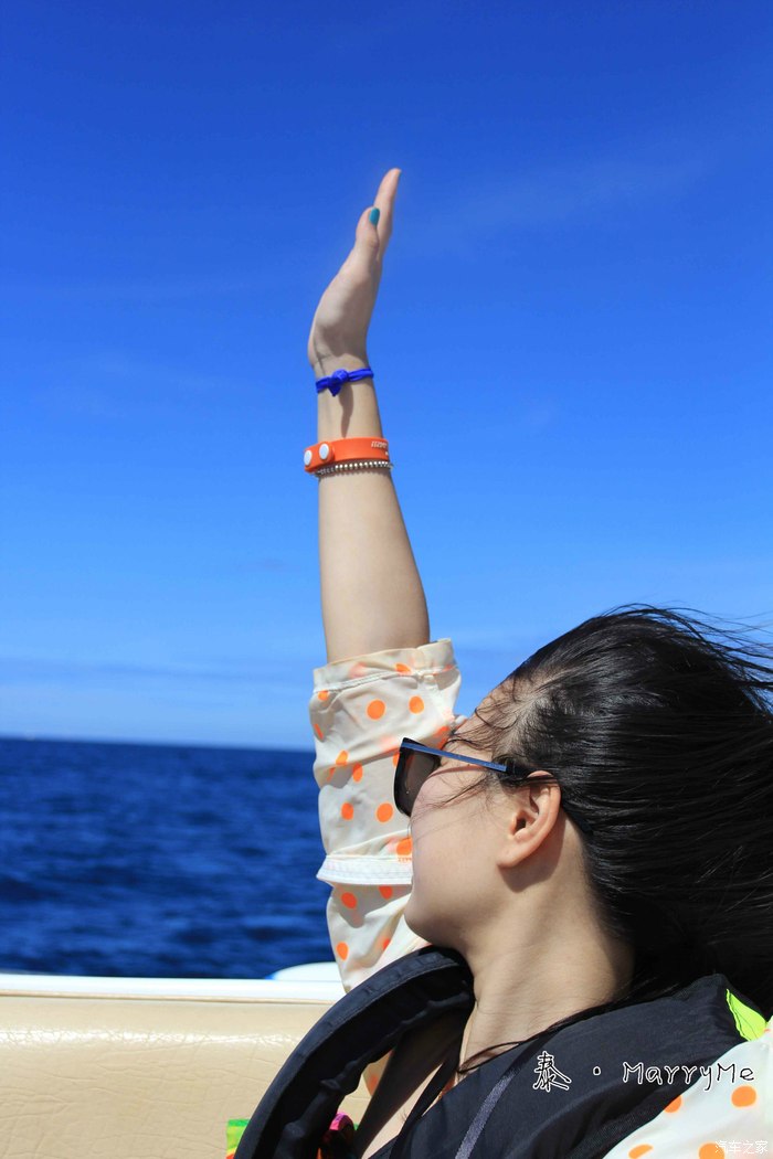 做快艇出海,一上快艇马上冲到船头,导游说我这么懂行知道坐船头,说坐船头是最爽的,后来快艇冲浪我们尖叫连连,坐在里面的羡慕嫉妒,但是船头只能坐4个人,所以他们只有羡慕羡慕了