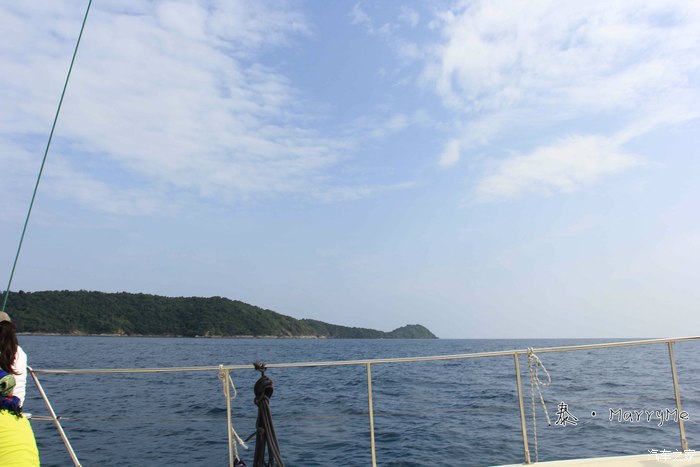 出海了,第二天双体帆船出发蜜月岛日落之旅~蜜月岛,又叫神木岛,被一个泰国老板买下之后就一直不开岛,沉寂了8年之久,刚开放之后也限制上岛人数,而且导游说整个普吉岛只有蜜月岛旁边有机会看到海豚,因此我们对这次日落追海豚之旅充满了期待。顺便说下,当日我们的一日游团只有10个人,加上导游船长之类的才13个人,导游说人多的时候会20来个人,所以我们运气还是不错的