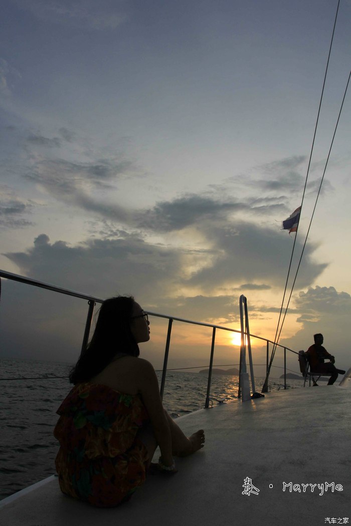 吃完就出海看日落追海豚了,阿贵导游给我们看了手机里拍的日落照片,美呆了,还有海豚游到船边飞跃的视频,一行人充满期待。可惜天气渐渐不给力,日落时云层太厚,只看到夕阳没有看到晚霞。海豚也千呼万唤不出来,在深海垂钓后海豚还没有出现,一船人只能失望而回了~~