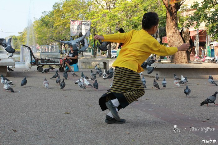 查了下地图,发现塔佩门离我们住的酒店只有1.2公里,于是决定步行回酒店,清迈河旁边,一个小女孩在追赶鸽子