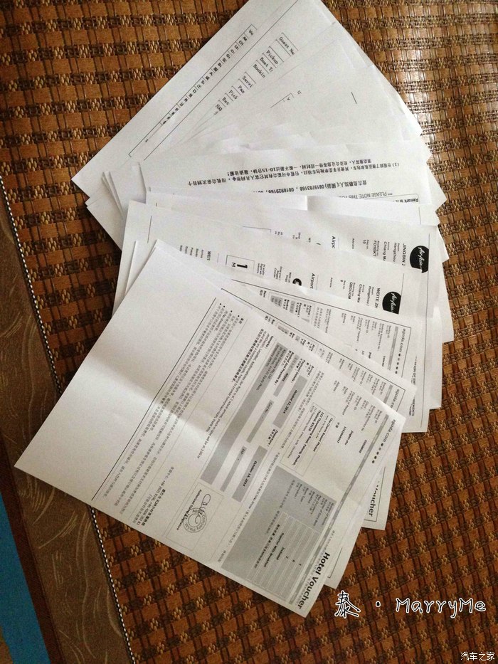 一大堆确认单,亚航可以在官网上值机,还可以花点钱选个好的座位,不过亚航位子都不错,空间挺大,没有特殊需求也不需要选座位,不过早点值机位子应该会靠前一点,自己打印登机牌之后到机场只要去柜台chick-in就可以了,比较快。回程的春秋航空比较坑爹,因为不能网上值机,所以只能提早2个小时到机场办登记手续,建议做春秋航空的还是花钱钱买前面3排或者12-13排紧急出口的相对宽敞的位子吧,其他位子只能端坐到天明~~脚伸不直,不管萌妹子还是大汉子。回来的时候我们买了第三排的位子,加了350B,位子和第二排加500B是一样一样的,第一排加750B,坐我们后面第四排的,那真是一把辛酸泪。