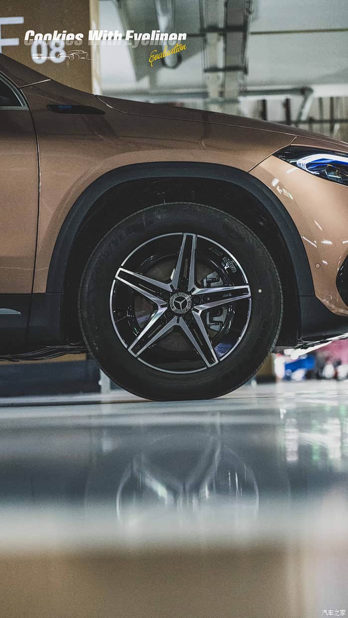 奔驰EQA的造型较为圆润饱满,轮廓和燃油车型的奔驰GLA比较类似,都有着起伏的腰线设计,以及较为突出的轮拱。奔驰EQA拥有着4463mm的车身长度,以及2729mm的轴距,属于紧凑级SUV的范畴,当然300 4MATIC 首发特别版搭载了18英寸的双色五幅铝合金轮毂,并匹配了235宽度的轮胎。
