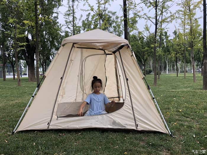 如果推荐指数满分是五颗星的话,露营帐篷可以获得三颗星,推荐指数一般。天冷、天热、狂风、骤雨都不适合用露营帐篷,只适合温度适宜,阳光又不那么晒的露营场景下使用。因为小朋友们外出露营很喜欢帐篷,所以经常带小朋友出去游玩的车友可以选择露营帐篷。这里推荐选择速开式帐篷,打开和收纳都很方便。