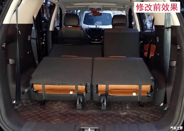 我正在研究,主要是参照cx70论坛里的大神的改造案例,其实还有一个办法很简单,因为A800地面是全平的,而A800第三排座椅是可放平的,把第二排座椅拆掉,直接再装一排第三排座椅就行了,A800之所以不同,就是因为第二排的座椅有问题,还有一个办法,想办法去买两个类似于宏光s3的第二排独立可放平座椅安上,下面孔缝对应外需要自焊连接件,总之原则是三排座椅保留放低,后备箱加二具盒,二排座椅换掉用可放平座椅代换,比如下图,cx70的改造图,改造前后对比