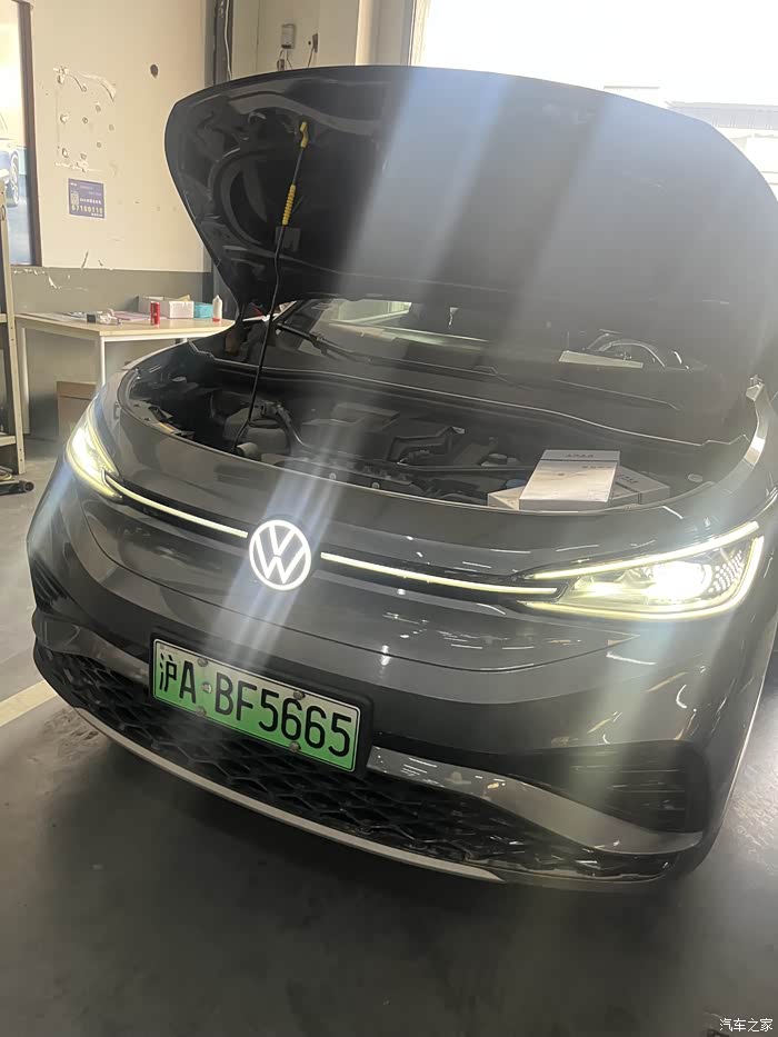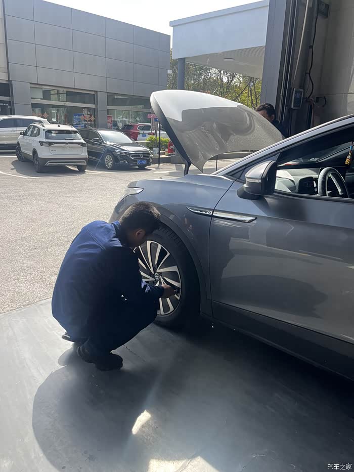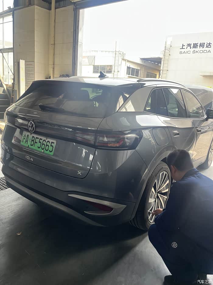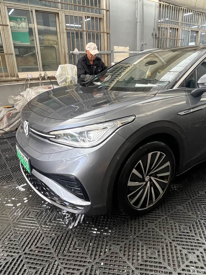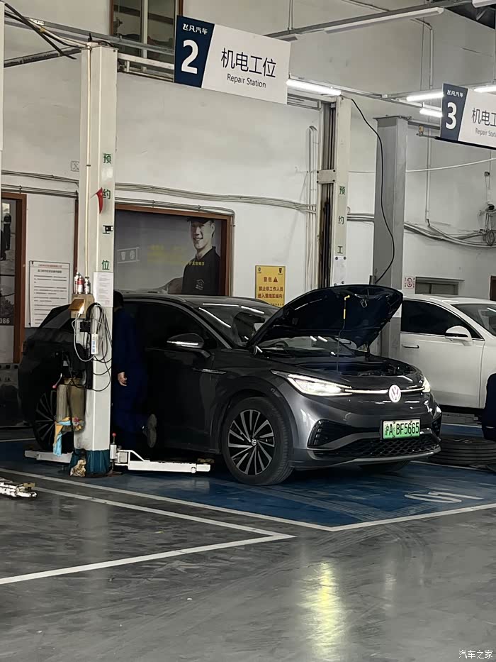 把我的ID4X开到了保养点,保养师傅在做保养前准备。