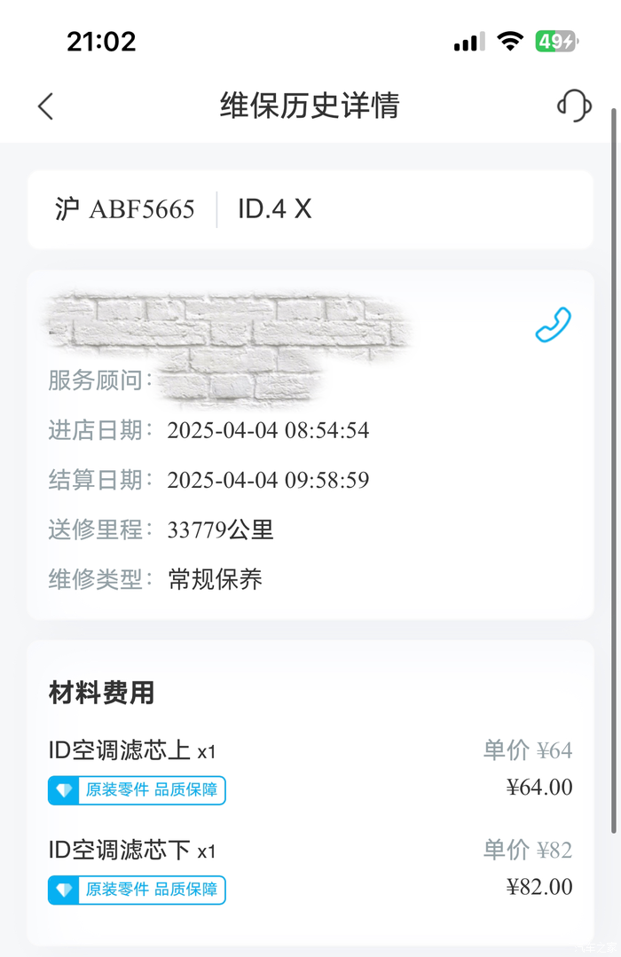 1、实际保养时间:1小时(因提前已经和维修师傅预约,无排队等待)。