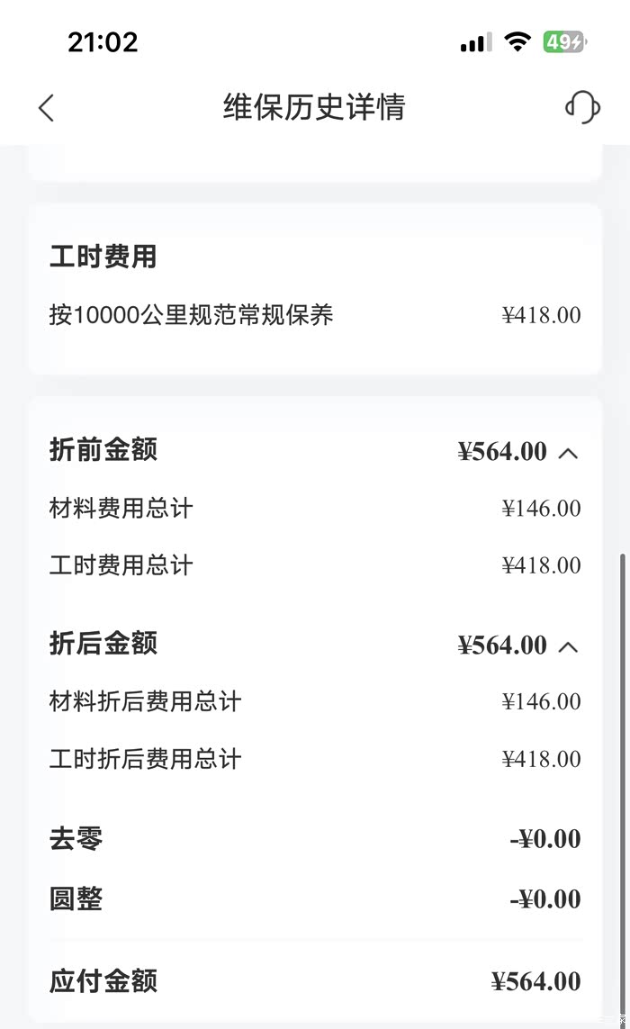 因为买车赠送的保养是一年一次,本次保养超出了一年一次的保养,因此只能购买了保养券,经过和师傅的讨价还价,最后价格是600元4次,折合本次保养为150元,如果不实用优惠,原价的保养工时费需要418元,材料费146元,合计564元,因此还是需要体检和保养点确定好优惠和价格,能为养车省下不少的钱。
