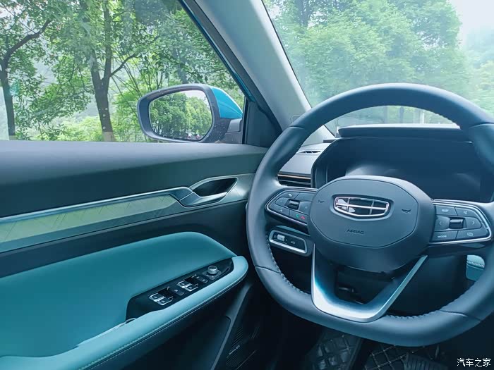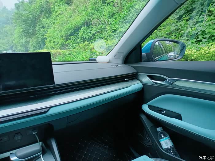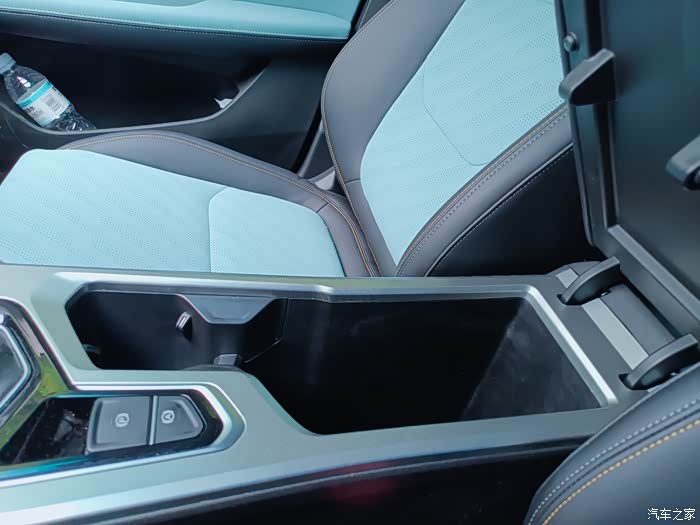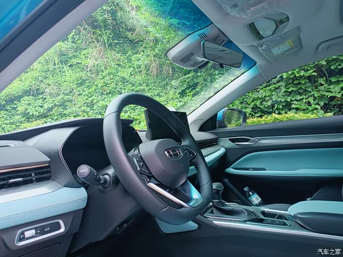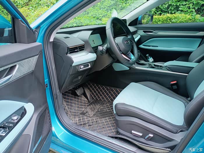 内饰上有着新颖的视觉,丹青兰撞色搭配炭纤维面板,有种清新的感觉,在用料上也有档次,手能触摸到的地方都是软质材料,仿皮的座椅比布料摸起有质感,还带有座椅加热功能,目前流行的飞机档杆看起养眼。