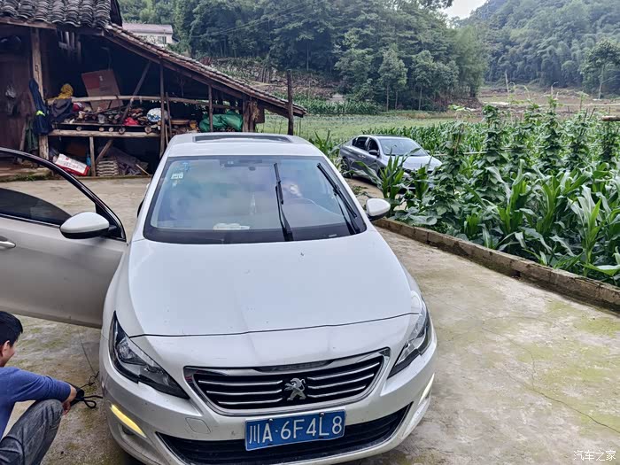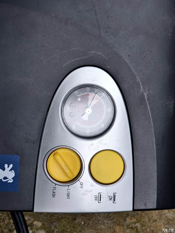我同事开他的14款408去办事,准备回来的时候发现轮胎都瘪了,就打电话给我求助,让我去救援他的车。我的后备箱里一直备了一个充气泵,正好可以派上用场,按照他给我的定位到达他漏气的地方。