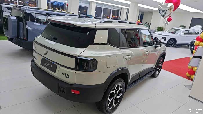 乘着这股东风,捷途利用山海T2的平台打造出另一款新能源方盒子SUV山海T1。山海T1大体上还是保留了硬朗的气质,例如硕大的黑色工程塑料保险杠和明显凸起的轮拱,但相比山海T2,它没有那么硬核,而是更城市化一些,比较适合一些不喜欢那么高调的