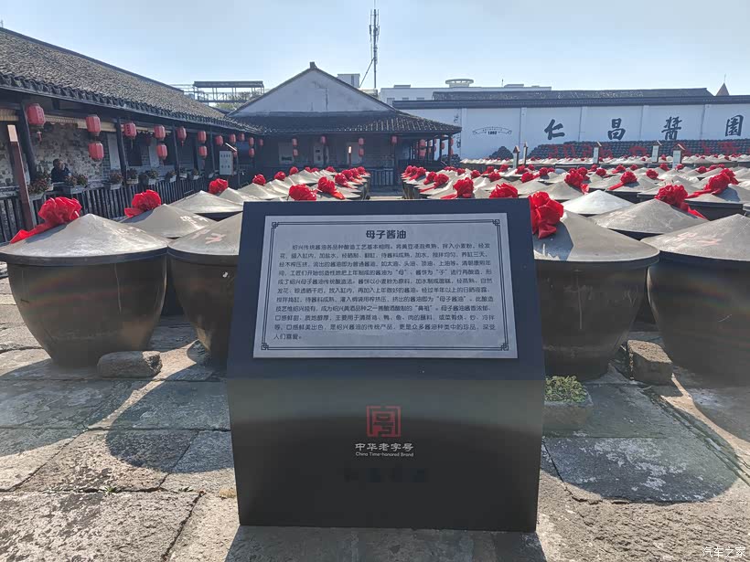 舌尖上的安昌,是酱香与腊味交织的盛宴。百年仁昌酱园是这里的味觉地标,创建于1892年,其古法酿造的“母子酱油”始于清康熙年间,作为浙江非遗,曾登上《舌尖上的中国》。露天场地上数百口酱缸整齐排列,在日光下静静发酵,孕育出醇厚绵长的酱香。每至腊月,古镇家家户户挂满腊肠、酱鸭、酱鱼干,用母子酱油腌制的腊味,咸鲜带甜,油润不腻,成为冬日里最浓郁的年味符号。
