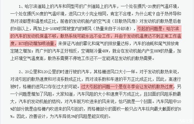 以上只是示意性的简单计算,真正的热平衡计算要复杂的多,仅一个热阻不辅以必要的测试手段就算不明白,业余条件下不可能算的准确,只是想说明油耗与散热条件的大概趋势走向,温度越低油耗越高,低温下开暖风等于增加了强制散热,油耗更高。