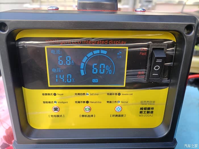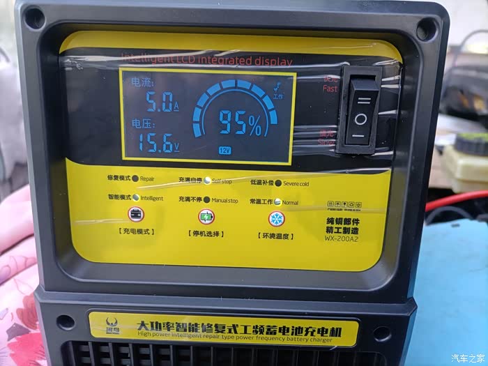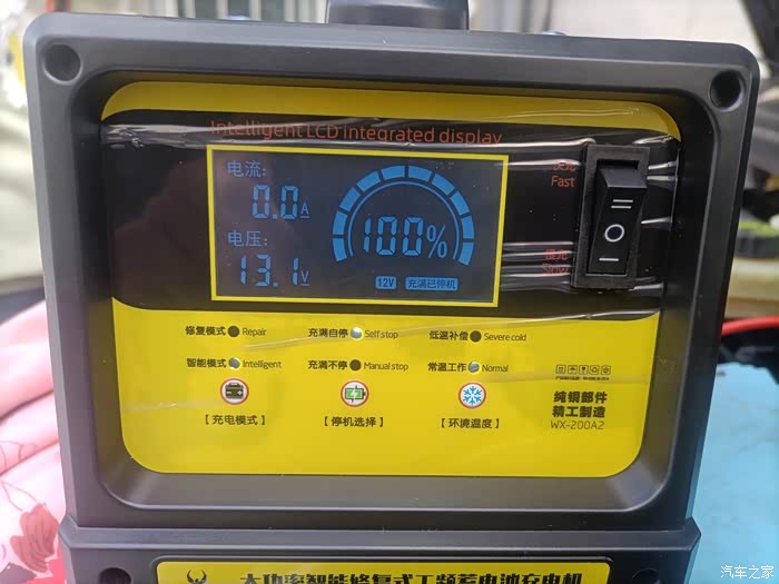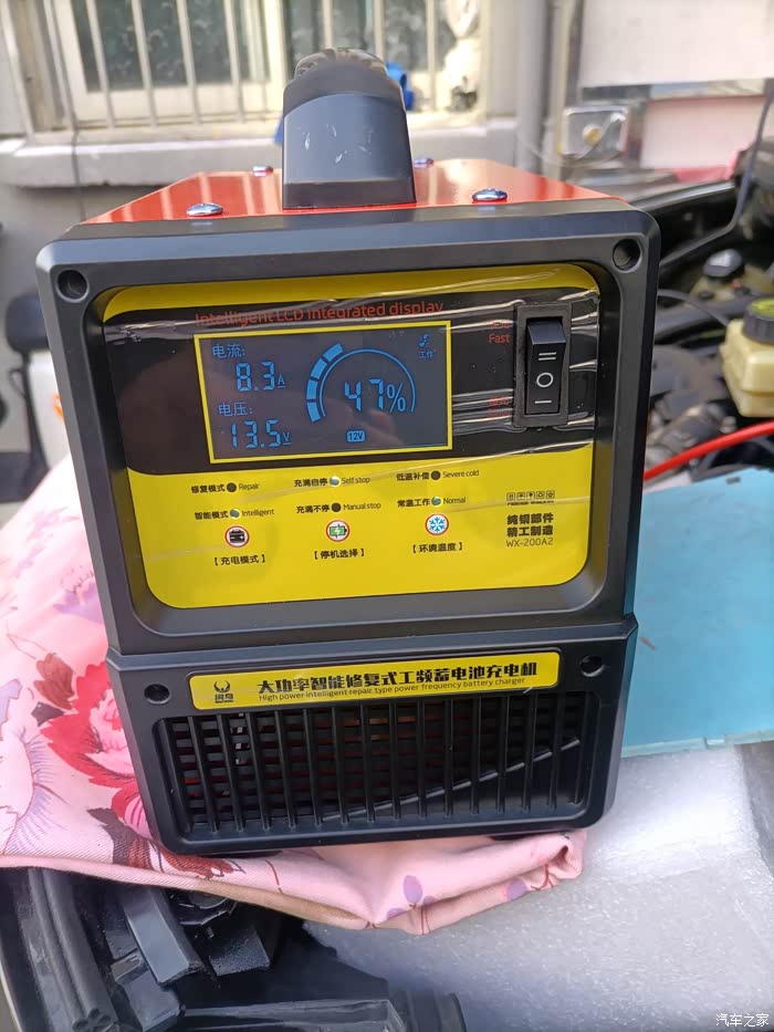 上礼拜三胖突然在热车的状态下打不着火,试了三次还是一口气上不来没成功,只好叫了救援来搭电处理,搭上电一把着了,就误认为是电瓶报销了,草率地将只用了两年不到的瓦尔塔电瓶给换了,不幸的是第二天又出现打不着火的问题,没办法,大修后遗症总该来个了断了,直接把车送东标授权售后服务中心请严大师好好检修(有时间另发贴介绍),排查加订购原厂正时等备件,一个星期交车。回来后想想新电瓶还没怎么跑就承受了N次点火测试的冲击,受伤不小,今天趁天气晴朗果断将新电瓶电量补足,下面是充电的过程。