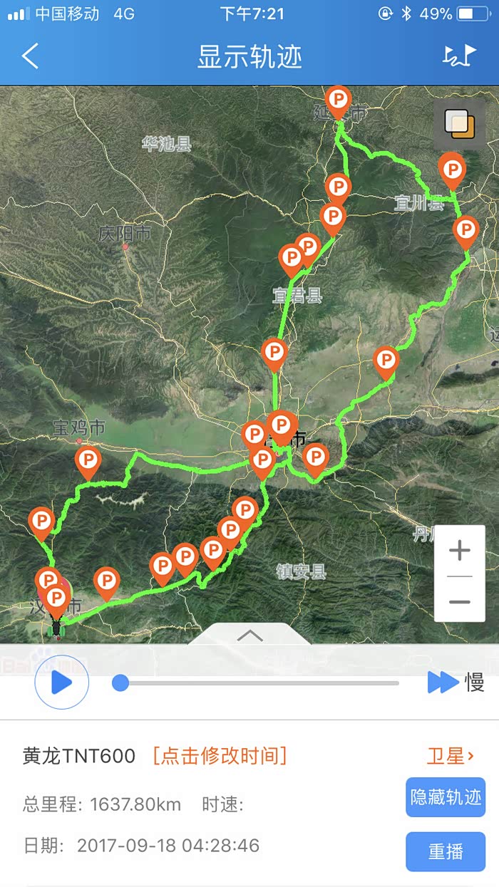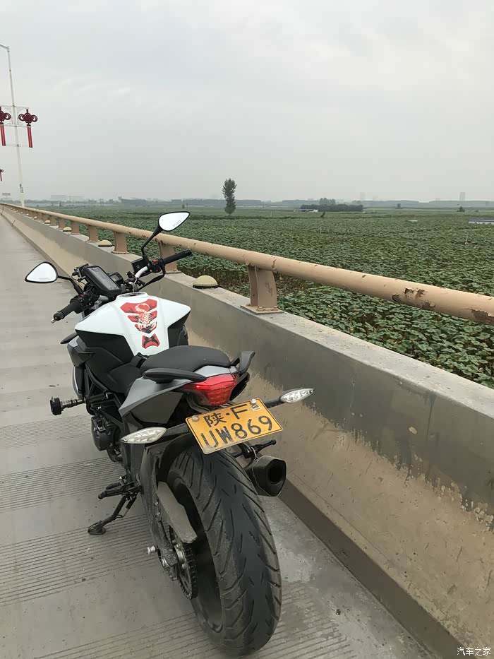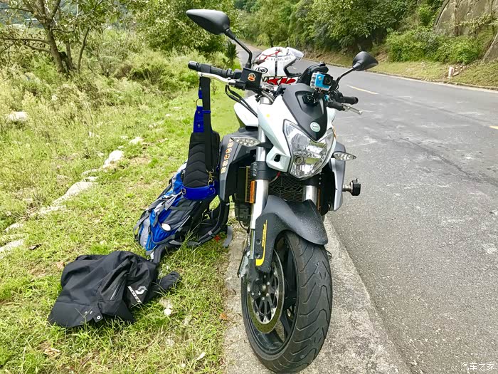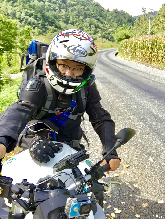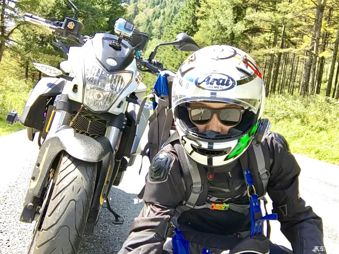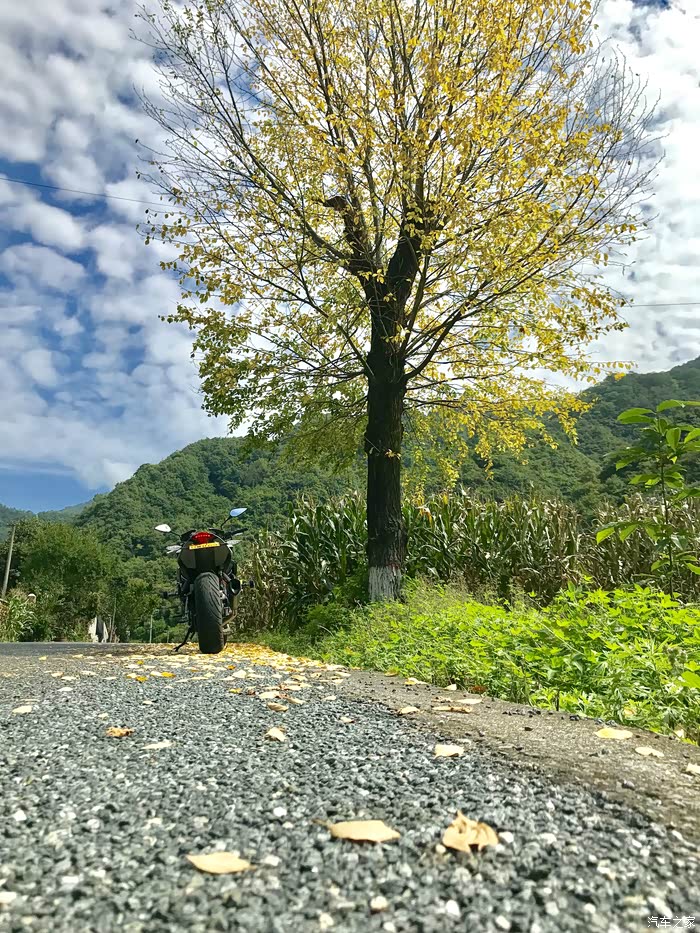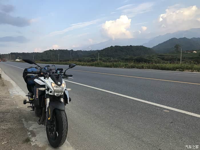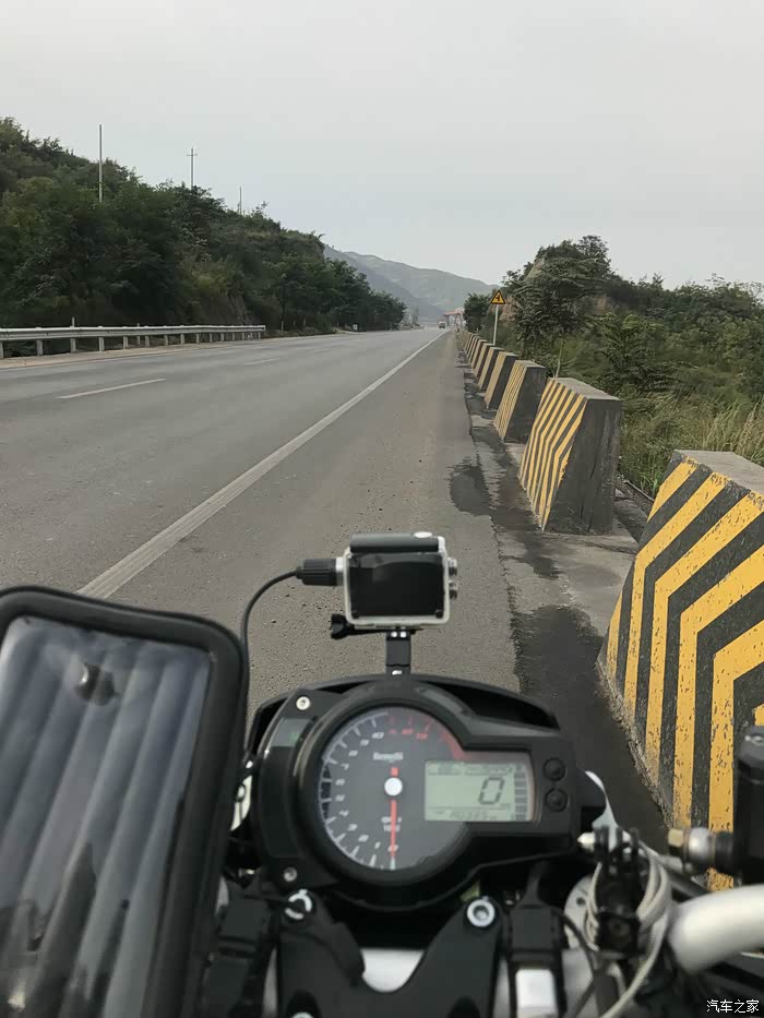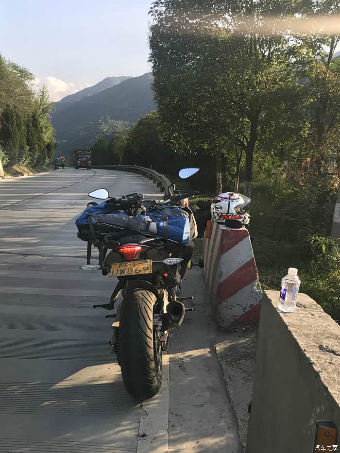 大概在三点的时候到达了秦岭的分水岭,以南是长江水系,以北是黄河流域,在地理上中国以此分为南北方,所以我们从地理意义上讲是南方人,我们的生活习惯实际上跟南方人更接近,但在行政意义上我们还是北方人。 一路上来的路实际上也不像老乡说的那么完美,在快接近分水岭的时候正在铺路面,水泥路面白改黑,正在铺沥青,没有任何标识和拦截,我就这样不知情的开进了刚铺上的沥青路面里去,工人见状赶紧喊我后退,老哥你特么倒是老拉我一把啊,我想退呢退不出去啊,开着满轮子沾满沥青颗粒的车心里的***数都数不过来,跑了十几公里才把轮子跑干净。 在分水岭上我看见路边停了一辆摩托车,大眼一看便知气质不凡,明显不是跑摩的的,走近一瞅是一辆有着街车之王称号的雅马哈MT09,这也曾是我很喜欢的车之一,最重要的是车主是一位各方面都火辣的女骑士,抹了一把口水,我决定还是走吧。为了不引起她的注意我故意车往前滑行了一段才启动点火,但骚气的声浪还是吸引了她,我从后视镜里看见她迅速夸上了车子,追了上来·······
