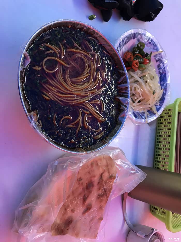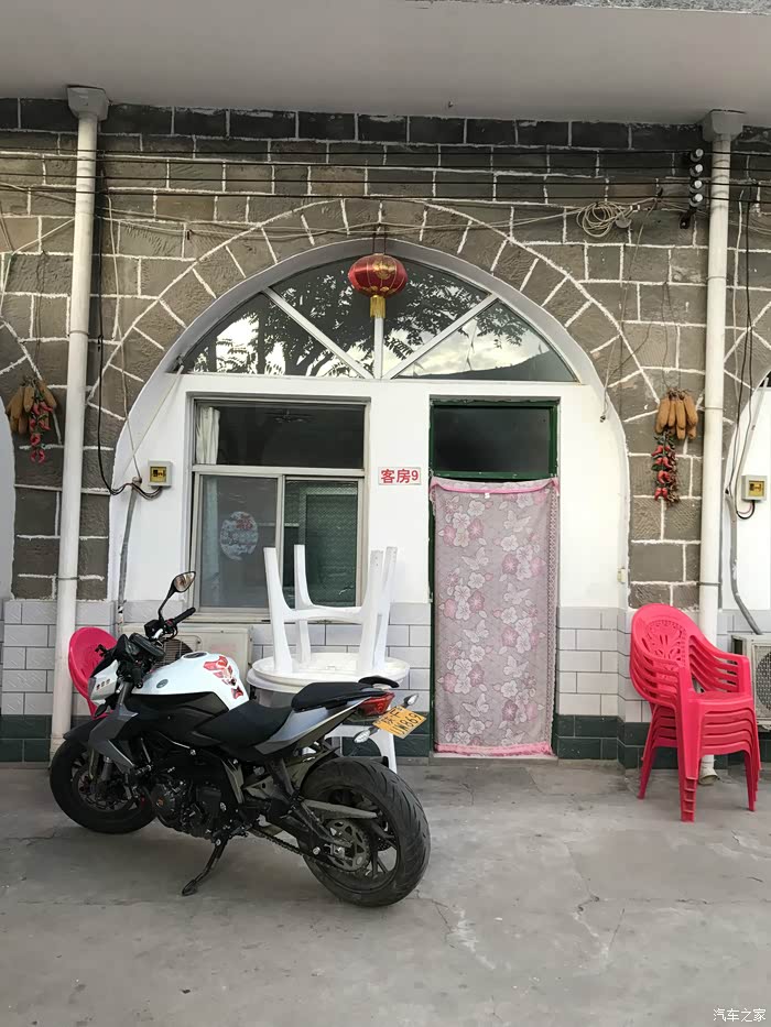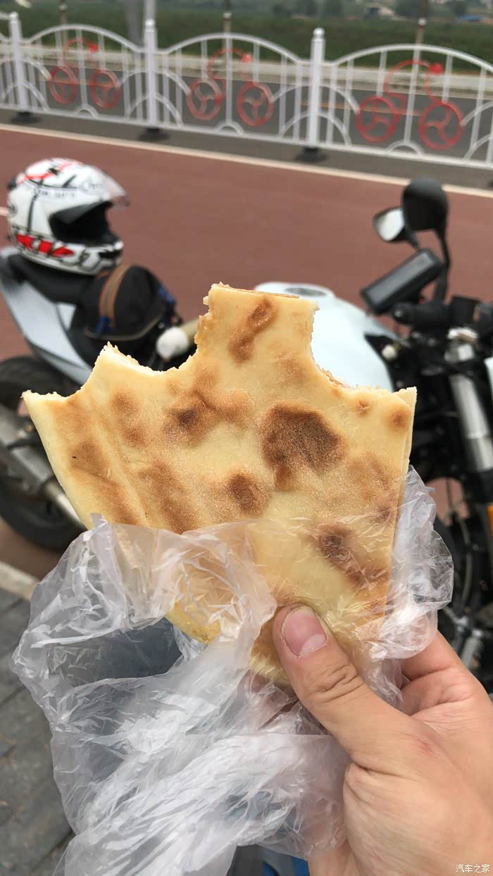 本来打算在地图上看看哪里有最近的加油站,。奈何拿出手机一看这地方竟然没有信号····于是只能继续往前走,遇到小镇什么的就有希望。 一路忐忑的跑了30公里左右,终于看见了村民的房子和炊烟,房子都是沿国道两边修的,看样子应该是个小镇,我终于看到了希望,路面有一家卖小吃的,我停好车,脱下一身的装备进去坐下,老板和员工加起来就一个人,我说给我来一个你做起来最方便的吧,于是老板就给我断了一份擀面皮,一碗已经凉了的稀饭,一个卤鸡蛋。边吃我边问老板这里有没有加油站,老板告诉我没有,最近的得到下一个镇上去,。大概50公里,还不一定有油,我说那你们平时怎么加油,她指指门口的自行车说,我们不加油······ 我冷静了一下,得先吃饱,万一一会儿要推车,算上行李将近500斤的车,推起来得费点劲。实在不行那就路上拦车,问人家借点油或者是高价买一点,又一想我没带抽油管啊,算了还是做好推车的准备吧,这是今天遇到的第一个危机。