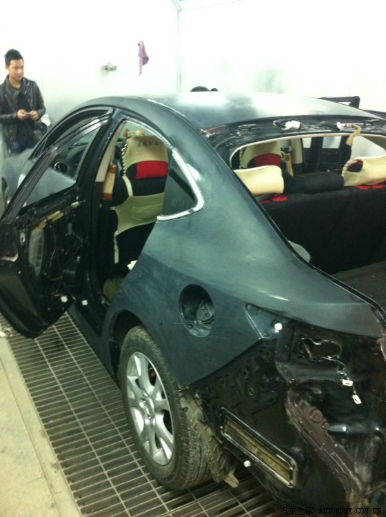 在这里提醒各位轿跑版想改白的朋友要特别注意了,当时我们谁都没有注意因为掀背要整个拆下来喷白,