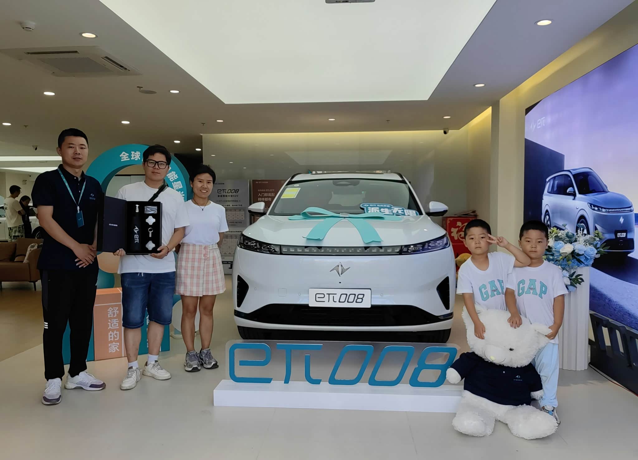 最终提车eπ008的提车合照,终于拥有了人生中第一辆属于自己和家庭的车了